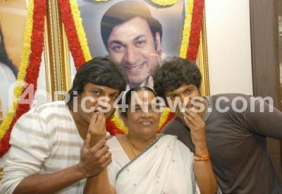 Photo Caption : File photo of Parvathamma Rajkumar serving sweets her sons to Puneeth Rajkumar and Shiva Rajkumar, Parvathamma Rajkumar passed away today after a brief illness, in Bengaluru on Wednesday 31st May 2017