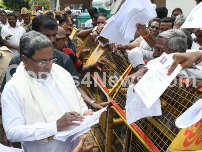Photo Caption : CM Siddaramaiah seen listening to public grievances during the Janatha Darshan program in Mysuru on Thursday 1st June 2017