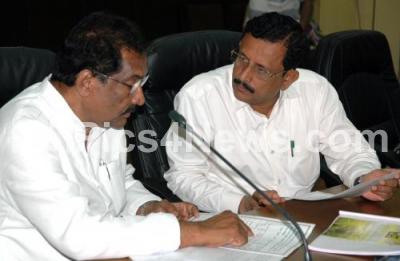 Photo Caption : BDTP Minister KJ George and Shankar, Deputy Commissioner Bengaluru Urban District seen during KDP meeting at ZP Office, in Bengaluru on Thursday 1st June 2017