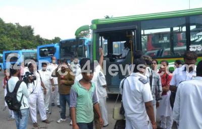 Photo Caption : BMTC drivers and conductors protesting against Depot Manager for his alleged harassment at Majestic Depot, in Bengaluru on Thursday 1st June 2017