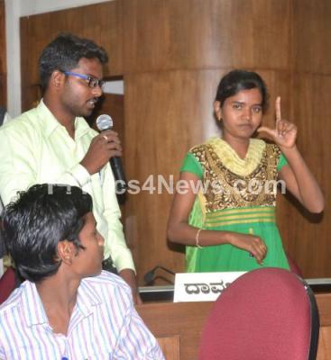 Photo Caption : Hearing impaired student during Children discussion program on Health and Education with CM Siddaramaiah organised by Karnataka State Children Rights Protection Commission and UNICEFF at Vikasa Soudha, in Bengaluru on Thursday 1st June 2017
