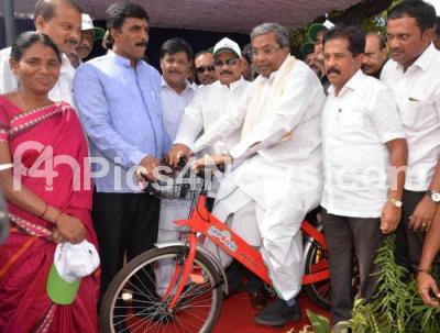 Event Description : CM Siddaramaiah with Minister Roshan Baig and others inaugurated the dedicated Bicycle Service in Mysuru on Sunday 4th June 2017