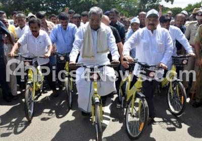 Event Description : CM Siddaramaiah with Minister Roshan Baig and others inaugurated the dedicated Bicycle Service in Mysuru on Sunday 4th June 2017