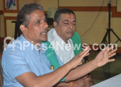 Farmers Association leaders and members led by Kodihalli Chandrashekhar seen addressing a meeting on GST at Hotel Kanishka, in Bengaluru on Thursday 8th June 2017
