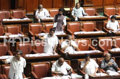 Photo Caption : BJP MLAs arguing during Assembly Session at Vidhana Soudha, in Bengaluru on Thursday 8th June 2017