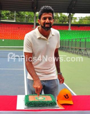 Rohan Boppanna, Mixed Doubles French Open Champion seen celebrating the French Open Victory by cutting a cake and meeting his fans during a press conference at KSLTA, in Bengaluru on Saturday 10th June 2017
