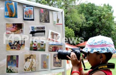 Photo Caption : Youngsters take a look at the post cards from around the world displayed during the music and meet of the Postcrossing society of India, in Bengaluru on Sunday 11th June 2017