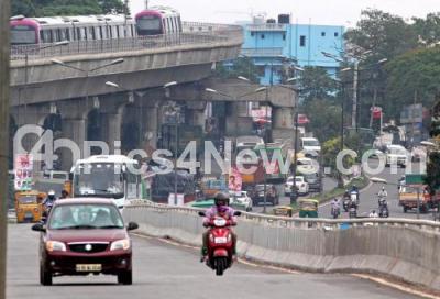 Photo Caption : Metro and public vehicles on Mysore Road are seen functional as usual, as Karnataka band called by Kannada Okkuta Kannada Rajya members was a total failure, in Bengaluru on Monday 12th June 2017