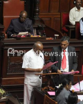 Photo Caption : Newly elected Congress MLC CM Lingappa seen taking oath as the MLC during the Council Session at Vidhan Soudha, in Bengaluru on Saturday 13th June 2017