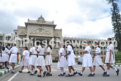 Photo Caption : Students entering the Vidhan Soudha to watch the Assembly Session proceedings, in Bengaluru on Wednesday 14th June 2017