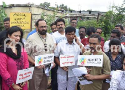 Photo Caption : MP Rajeev Chandrashekhar and residents of Talaghattapura participated in a Save Lake awareness campaign during the maintenance and restoration of lakes inspection drive, in Bengaluru on Saturday 17th June 2017
