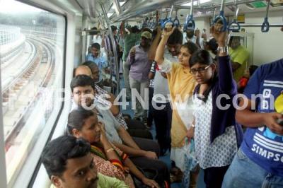 Bangaloreans, passengers and children were seen enjoying their maiden Metro ride after the first phase of Bengaluru Metro was inaugurated, from Mantri Square Sampige Station to Yelechenehalli Metro station, with 10 new stations on this route, of the total 42 km first phase of Bengaluru Metro, in Bengaluru on Sunday 18th June 2017