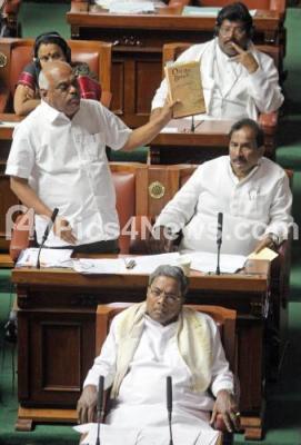 Photo Caption : Minister Ramesh Kumar addressing during Assembly Session at Vidhana Soudha, also seen are CM Siddaramaiah and Minister KJ George, in Bengaluru on Tuesday 20th June 2017
