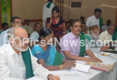 Photo Caption : Kodihalli Chandrashekhar with farmer leaders held a meeting on the farmer loans being waived off by the Karnataka government and the remarks made by BJP leader Venkaiah Naidu on farmers, the meeting was held at Kanishka Hotel, in Bengaluru on Thursday 22nd June 2017