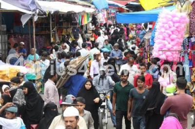 Photo Caption : Muslims purchasing clothes, bangles, mehandi on the eve of Eid Ul Fitr and the end of Ramzan month at Shivaji Nagar, in Bengaluru on Sunday 25th June 2017