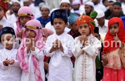 Photo Caption : Muslims seen offering prayers during Ramzan prayer on the occasion of Eid ul Fitr at Chamarajpet Eidgah ground, in Bengaluru on Monday 26th June 2017