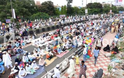 Muslims seen offering prayers during Ramzan prayer on the occasion of Eid ul Fitr on Mysur Road, in Bengaluru on Monday 26th June 2017