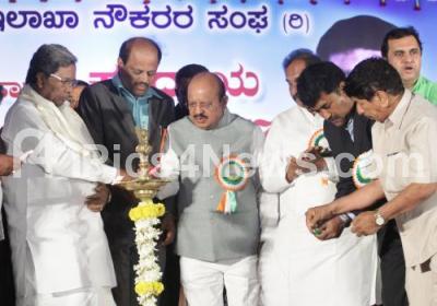 Photo Caption : CM Siddaramaiah with Ministers KJ George, TB Jayachandra and others inaugurating the State Level revenue Workers Conference at Palace Grounds, in Bengaluru on Thursday 6th July 2017