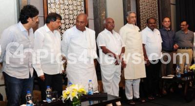 Event Description : HD Devegowda, JDS Supremo with HD Kumarswamy and other senior JDS leaders seen at the JDS party meeting at Hotel Shangri la, in Bengaluru on Thursday 6th July 2017