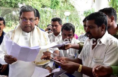 Photo Caption : CM Siddaramaiah receiving public petitions at Home office Krishna, in Bengaluru on Monday 10th July 2017