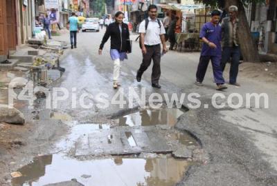 Deep crater like potholes were seen at the Gandhinagar, causing problems to the walkers and the motorists, in Bengaluru on Saturday 15th July 2017