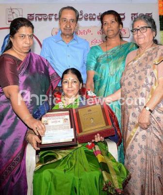 Photo Caption : Karnataka Women Writers Association President Dr Vasundara Bhupati presenting “H S Parvathi†award to Dr Gayatri Navada at a programme organized by Karnataka Women Writers Association at Kannada Sahitya Parishat, in Bangalore on Sunday 16th July 2017