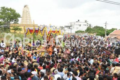 Photo Caption : Devotees throng to witness the Birthday celebration of Goddess Chamundeshwari was held with all grandeur, at the hilltop shrine at Chamundibetta, in Mysuru on Sunday 16th July 2017