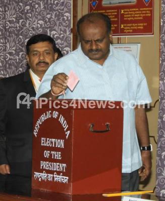 Photo Caption : HD Kumarswamy, JDS leader and Former CM seen casting his vote for the President Election at Vidhan Soudha, in Bengaluru on Monday 17th July 2017