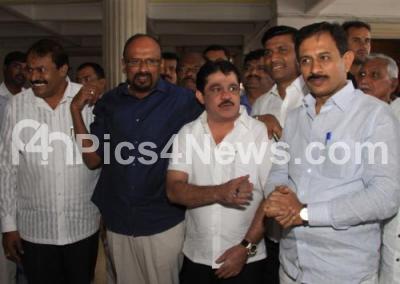 Photo Caption : JDS rebel MLAs Zameer Ahmed, Akhanda Srinivas Murthy, Balakrishna and others seen arriving to cast vote for the President Election at Vidhan Soudha, in Bengaluru on Monday 17th July 2017