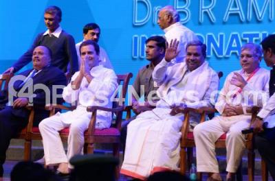 Photo Caption : AICC Vice President Rahul Gandhi is seen with Chief Minister of Karnataka Siddaramaiah and others at the Dr BR Ambedkar International Conference 2017 at GKVK Campus, in Bengaluru on Friday 21st July 2017