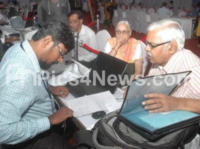 Photo Caption : People seen filing their income tax during the 3 day Income Tax Mela at Palace Grounds, in Bengaluru on Saturday 29th July 2017