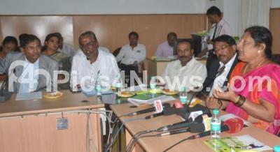 Photo Caption : Mayor G Padmavathi with BBMP Commissioner Manjunath Prasad, Dr Bettegowda, President, Karnataka Volleyball Association, Nanda Kumar, Secretary Karnataka Volleyball Association and Councilor Sampath Raj during a meeting on Mayor Cup on Volley Ball Tournament , in Bengaluru on Monday 31st July 2017