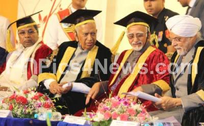 Photo Caption : Vice President of India Hamid Ansari with Chief justice of India Jagdish Singh Khehar, Governor of Karnataka Vajubhai Vala and Chief Minister of Karnataka Siddaramaiah during Annual Convocation of National Law School of India University, in Bengaluru on Sunday 6th August 2017
