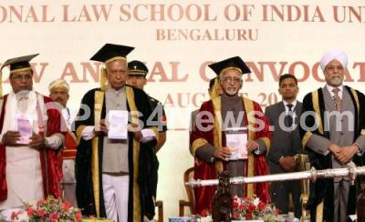 Event Description : Vice President of India Hamid Ansari with Chief justice of India Jagdish Singh Khehar, Governor of Karnataka Vajubhai Vala and Chief Minister of Karnataka Siddaramaiah during Annual Convocation of National Law School of India University, in Bengaluru on Sunday 6th August 2017