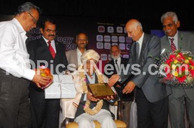 Photo Caption : Dr M Annadurai, Director ISRO Satellite Centre, Bangalore, with Dr LV Muralikrishna Reddy, Chairman Indian Technology Congress and others presented Technology Excellence Award to Prof Radhakrishna during the Indian Technology Congress 2017 program at NIMHANS Convention Centre Hall, in Bengaluru on Thursday 10th August 2017