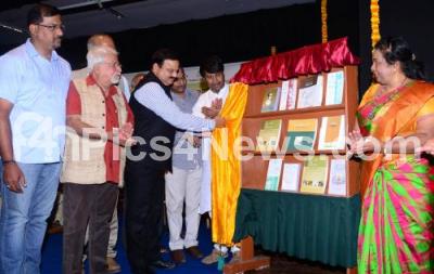IM Vittala Murthy, Retd IAS Officer with Dr MS Murthy, KV Subramanya and others released various books of Karnataka Lalithakala Academy during a program at Kannada Bhavan, in Bangalore on 12th August of 2017