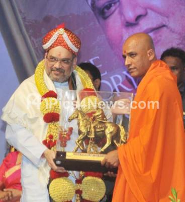Photo Caption : BJP National President Amit Shah being felicitated by Nirmalanandanatha Swamiji, head of Adichunchanagiri Math during “The Story of A Guru†book release at Adichunchanagiri Math, in Nagamangala Taluk, Mandya District on Sunday 13th August 2017