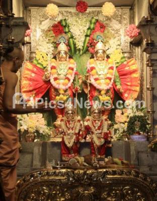 Photo Caption : Priest performing special pooja at the ISKCON temple, West of Chord Road, on the occasion of Krishna Janmashtami festival, in Bengaluru on Monday 14th August 2017