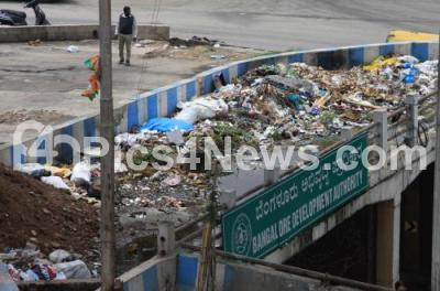 Photo Caption : Garbage being dumped over the toll gate underpass near Vijayanagar, in Bengaluru on Wednesday 16th August 2017