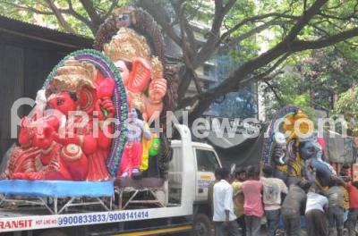 Photo Caption : Ganesha idols decked up for sale for the upcoming Ganesh Chathurthi Festival at RV Road, in Bengaluru on Wednesday 16th August 2017