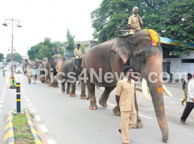Photo Caption : Dasara elephants seen at Mysuru City, before the festivities start for the Dasara Festival 2017, in Mysuru on Friday 18th August 2017
