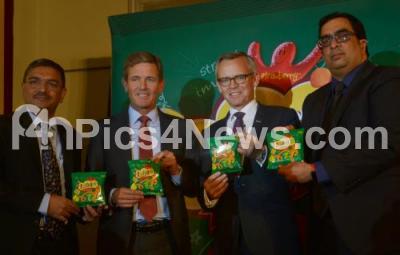 Peter Ruzicka, CEO, Orkla ASA with Sanjay Sharma, CEO, MTR Foods Pvt Ltd, Atle Vidar Nagel Johanssen, CEO, Orkla Foods and others launched the Norways 1st confectionary brand “Laban” in India during a press conference, in Bengaluru on Tuesday 22nd August 2017