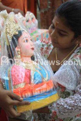 People seen purchasing the Gowri idols on the eve of Gowri Ganesha Festival at Malleswaram, in Bengaluru on Wednesday 23rd August 2017