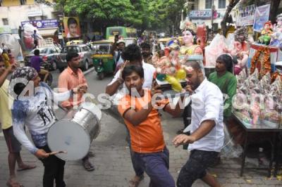 Event Description : Devotees carrying Gowri Ganesha idols at RV Road, on the eve of Ganesha Festival, in Bengaluru on Thursday 24th August 2017