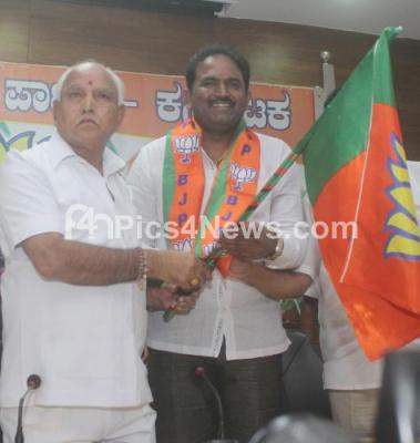 Photo Caption : Congress leader Varaprasad Reddy joined BJP party in the presence of BS Yeddyurappa at BJP office, in Bengaluru on Sunday 27th August 2017