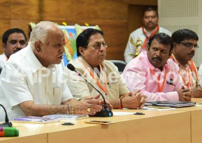 Photo Caption : BS Yeddyurappa, BJP State president and BJP Slum Morcha leaders chaired a meeting on the BJP Slum Morcha at BJP Office, in Bengaluru on Tuesday 29th August 2017