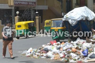 Photo Caption : Garbage piled up on the roads of Byrasandra, in Bengaluru on Thursday 31st August 2017