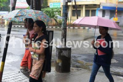 Photo Caption : People using umbrella to protect from the heavy rains in Bengaluru City, in Bengaluru on Saturday 2nd September 2017
