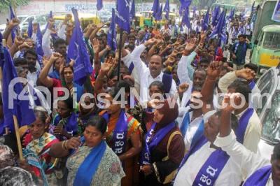Photo Caption : Members of Dalit Sangharsh Samithi protesting and demanding fulfill their various demands at Bannappa Park, in Bengaluru on Monday 4th September 2017