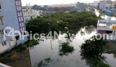 Photo Caption : Rain waterlogged at a residence near RTO office, KR Puram, due to heavy rainfall in the city, in Bengaluru on Monday 4th September 2017